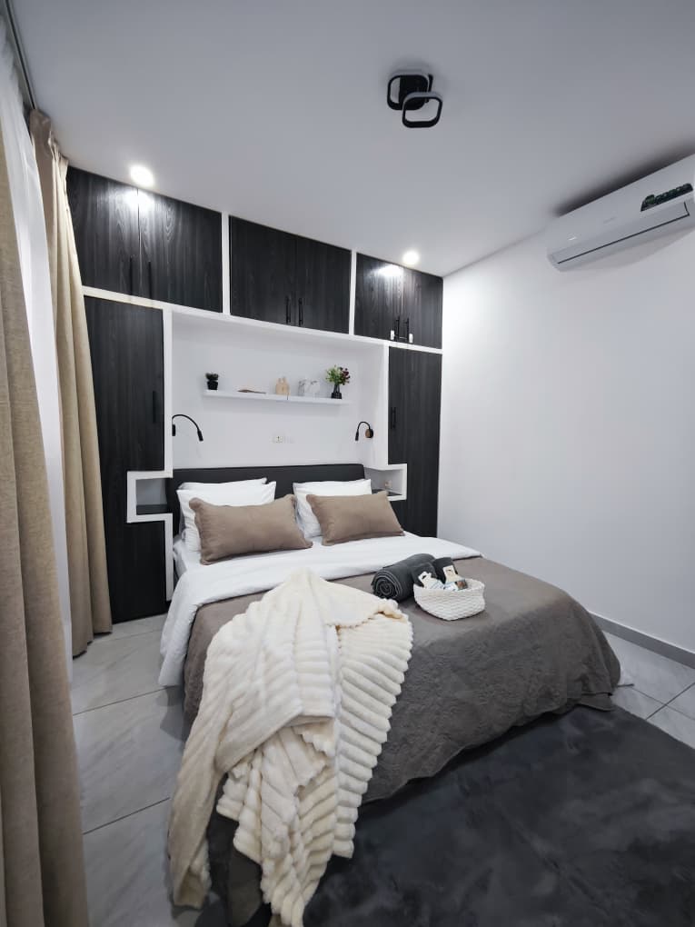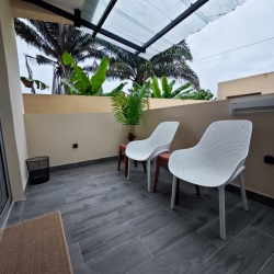 Situé à Abidjan, dans la commune de Cocody, l’Appartement Corail M’Badon est un 2 pièces où confort et charme s’harmonisent à la perfection et tout cela dans un beau bâtiment neuf et sécurisé qui vous séduira par sa belle décoration scandinave minimaliste et par la qualité des services proposées, cet appartement meublé est au rez-de-chaussée et dispose de toutes les commodités dont une chambre autonome et bénéficie d’un séjour, une cuisine équipée, un belle terrasse aménagée, une connexion internet, un abonnement canal, un parking intérieur afin de vous permettre de passer un séjour de qualité en toute sécurité.