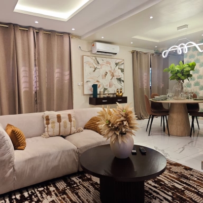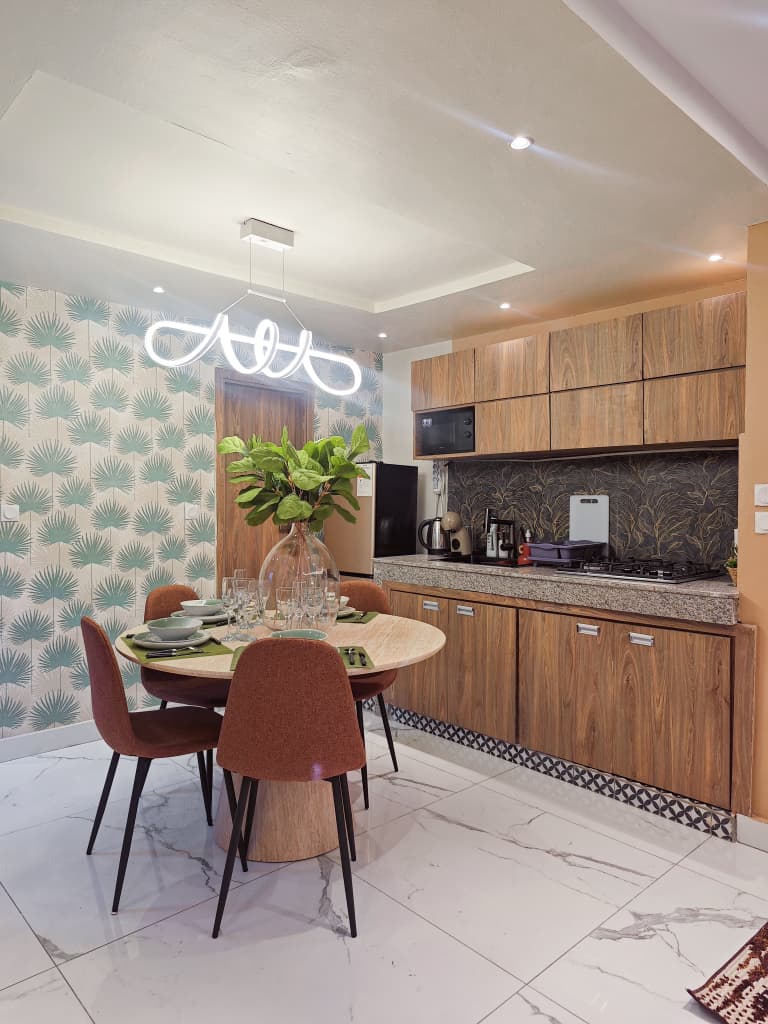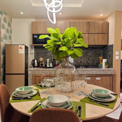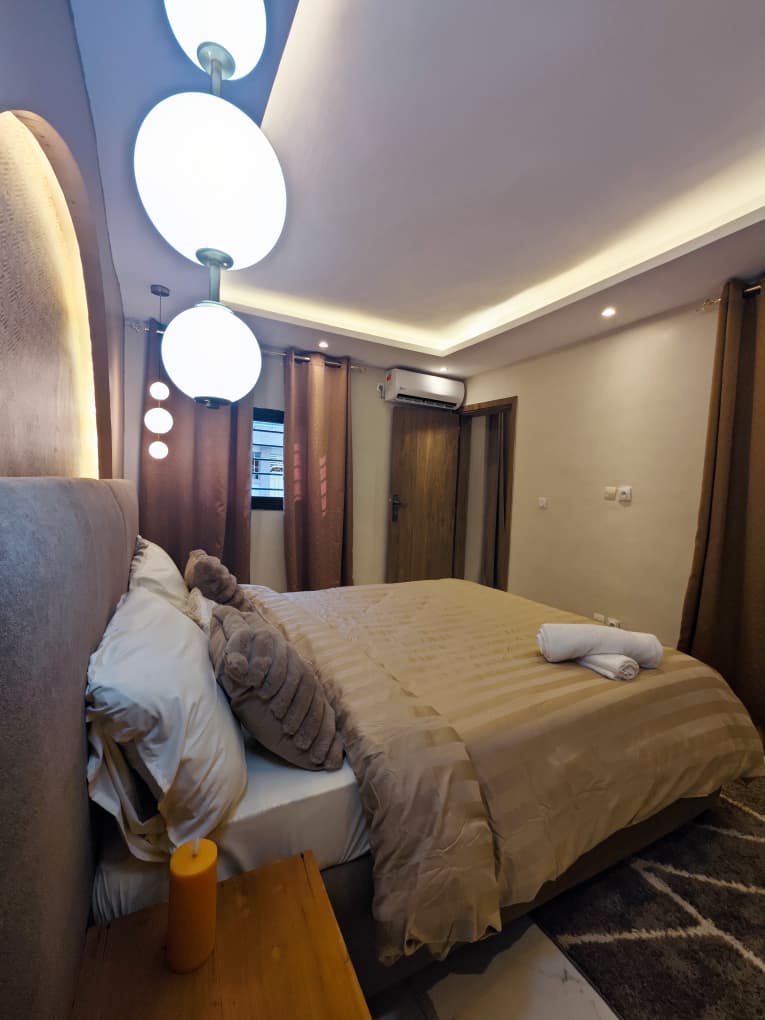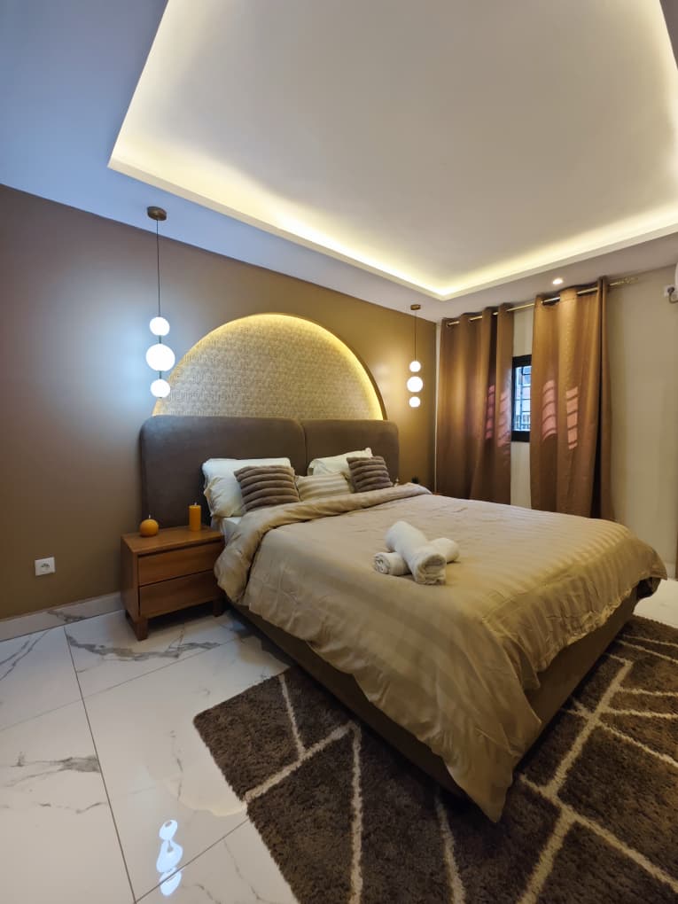 Situé à Abidjan Cocody dans le quartier de la palmeraie, dans la cité du bonheur, nous vous proposons l’Appartement Le Lodge Palmeraie situé dans une cité calme et sécurisé au rez-de-chaussée, cet appartement est décoré dans un style minimaliste chic, la bonne localisation de l’appartement vous donne l’occasion de découvrir les restaurants et loisirs dans ce secteur, cet hébergement est l’endroit idéal pour votre séjour en Côte d’Ivoire