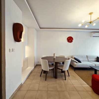 Situé à Abidjan dans la commune du Plateau plus précisément au boulevard Roume, nous vous proposons l’Appartement Le Zénith Plateau situé au 8 ème étage dans les environs de l’union parlementaire avec vue sur la lagune, cet appartement meublé de 2 pièces avec toutes les commodités est décoré avec élégance avec une touche d’africanité dans un environnant, inspirant et apaisant, ici vous bénéficiez d’une vue donnant sur la piscine et sur la nature, vous avez toutes les commodités, un ascenseur, une piscine, un service de ménage pour répondre à vos besoins, la fibre optique et Netflix avec en bonus, un vidéo projecteur, la bonne localisation de ce logement meublé vous donne l’occasion de découvrir la commune et ses environs, cet hébergement est l’endroit idéal pour votre séjour en Côte d’Ivoire