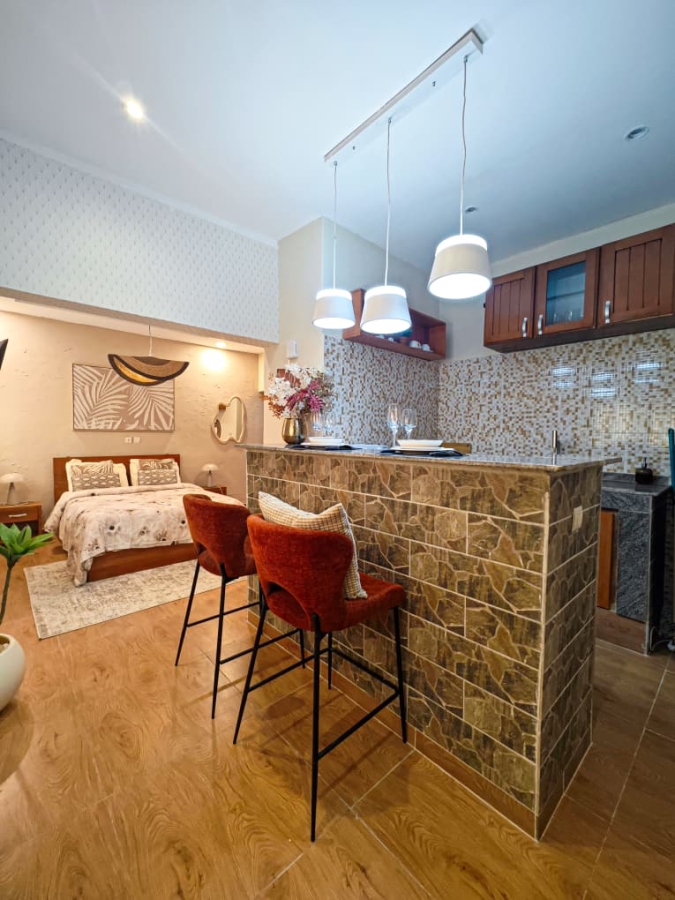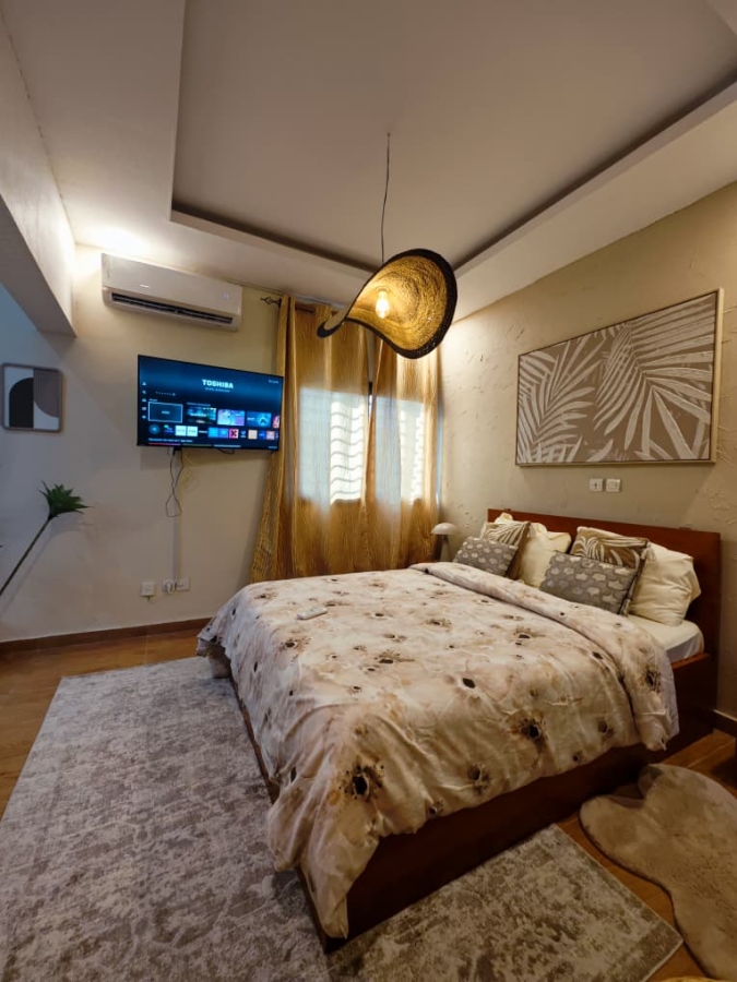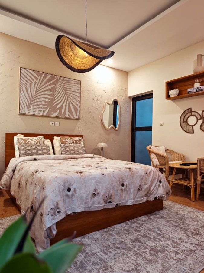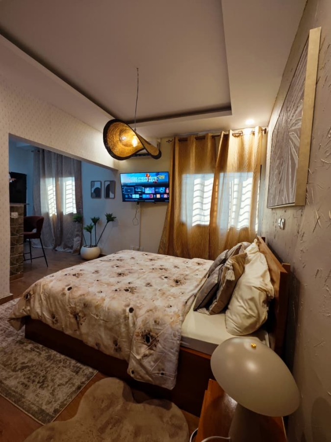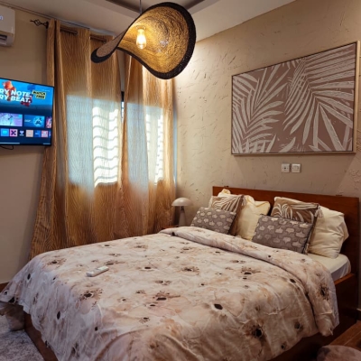 Situé à Abidjan Cocody dans le quartier de la palmeraie, dans la cité du bonheur, nous vous proposons Studio Le Loft Palmeraie situé dans une cité calme et sécurisé au 1er étage, ce studio est décoré dans un style minimaliste chic, la bonne localisation de l’appartement vous donne l’occasion de découvrir les restaurants et loisirs dans ce secteur, cet hébergement est l’endroit idéal pour votre séjour en Côte d’Ivoire