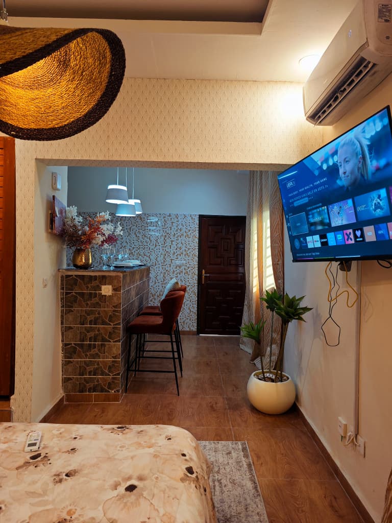 Cet hébergement très hospitalier dispose une connexion internet haut débit, une petite cuisine équipée, un service de ménage afin de vous permettre de passer un excellent séjour à Abidjan.