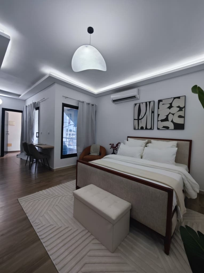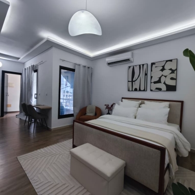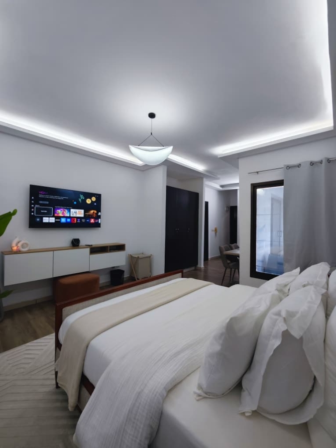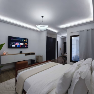 Situé à Abidjan Cocody dans le quartier de la riviera 2 en face de l’école André Malraux, nous vous proposons le Studio meublé Malraux situé dans un bâtiment en bordure de voie et facile d’accès, ce logement est décoré dans un style chic et raffiné et est au 3 ème étage, la bonne localisation de l’appartement vous donne l’occasion de découvrir les restaurants et loisirs dans ce secteur, cet hébergement est l’endroit idéal pour votre séjour en Côte d’Ivoire